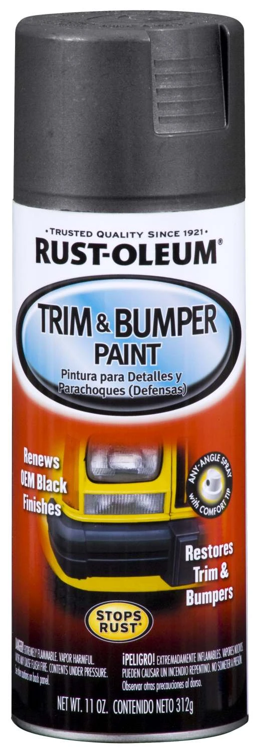 Rust-Oleum Trim & Bumper Paint renews and restores the OEM Matte Black Finish found on most vehicles. Trim & Bumper Paint is ideal for metal trim, moldings, rearview mirror covers, bumpers and rub strips.