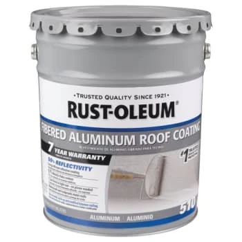 - Rust-Oleum® 7-Year fibered aluminum roof coating reflects heat, prevents corrosion and protects against mild acid and alkali fumes on a variety of substrates, including metal, transite, built-up roofing and modified bitumen.